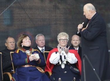 Ja mii gudnijahttit buohkaid sin geat ihte ruvkkiin ja čiehkádanbáikkiin olggos – báikkálaš olbmot geat ledje nagodan ceavzit, ja geat de sáhtte álgit bajáshuksemiin – sii galge hukset ođđa ja buoret Norgga. Lea stuora illu go máŋggas dis leat min searvvis dáppe odne.